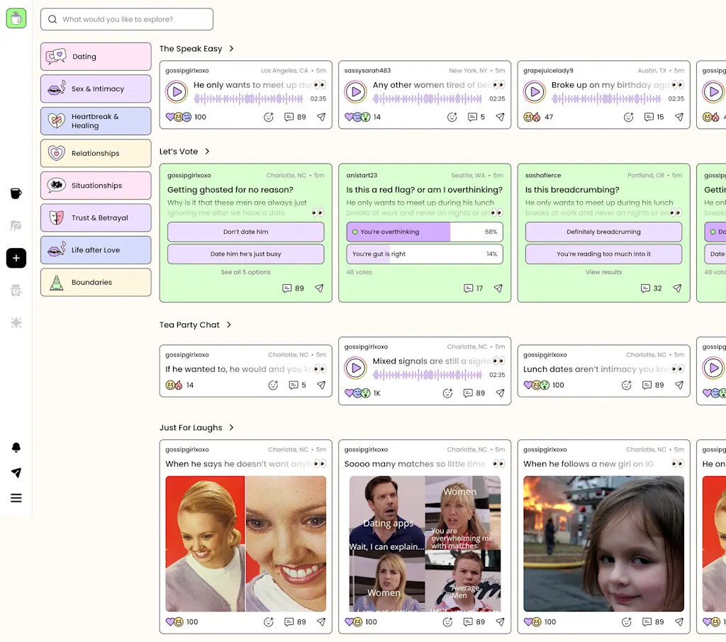 Customers may additionally vote on whether or not a person’s habits was fascinating or shady by deciding on crimson or inexperienced flag icons beneath somebody’s put up, providing the creator a kind of pulse examine that they could in any other case have needed to look forward to till their subsequent women’ night time out.